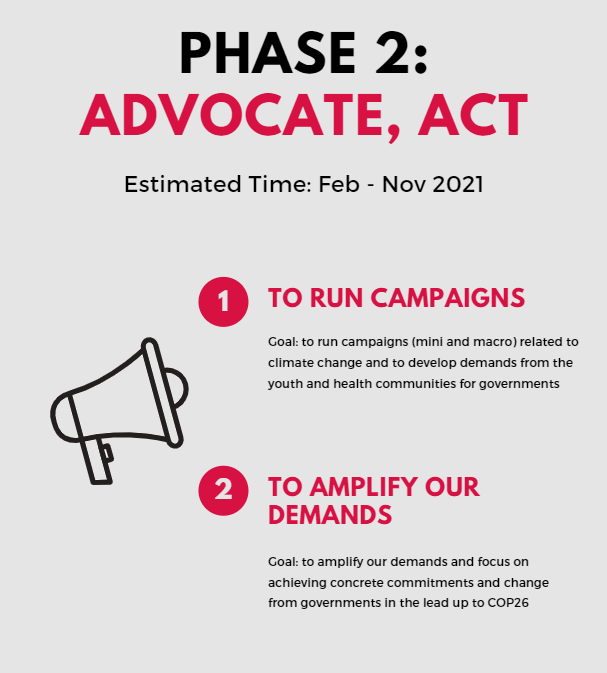 In addition to continuing our education-focused efforts, we are implementing a range of campaigns on topics, including a just green transition, commitments to tackle the health impacts of climate change, World Environment Day, Youth Demands (using recently gathered data), COP26 commitments, and other joint campaigns with our partners and allies. We appreciate the continued support at all levels of the SfGH network in our advocacy initiatives, and we will push for further impact through our conferences and other International, National and Regional events. Alongside this, we are working in collaboration with a range of stakeholders, nationally and locally, to increase our outreach and impact to a wider audience. This will all be used to lobby government actors and other important stakeholders to tackle climate change and its impact on health.